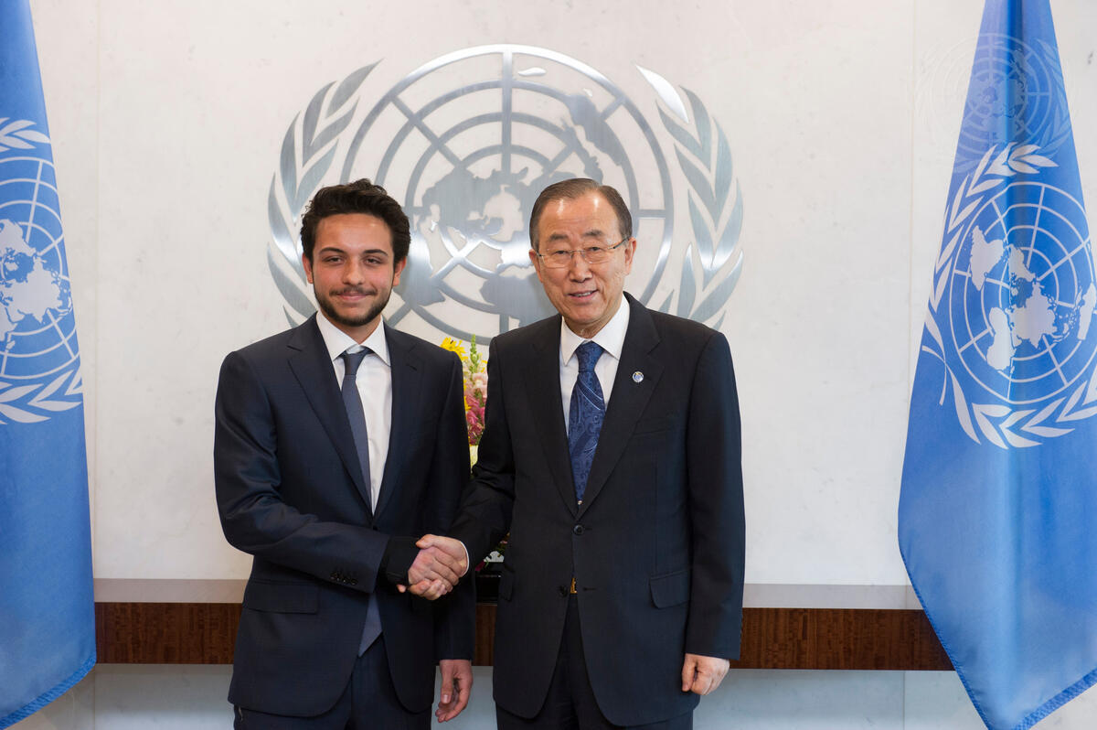 Secreatary-General Ban Ki-moon (right) meets Crown Prince Al Hussein Bin Abdullah II of the Hashemite Kingdom of Jordan.