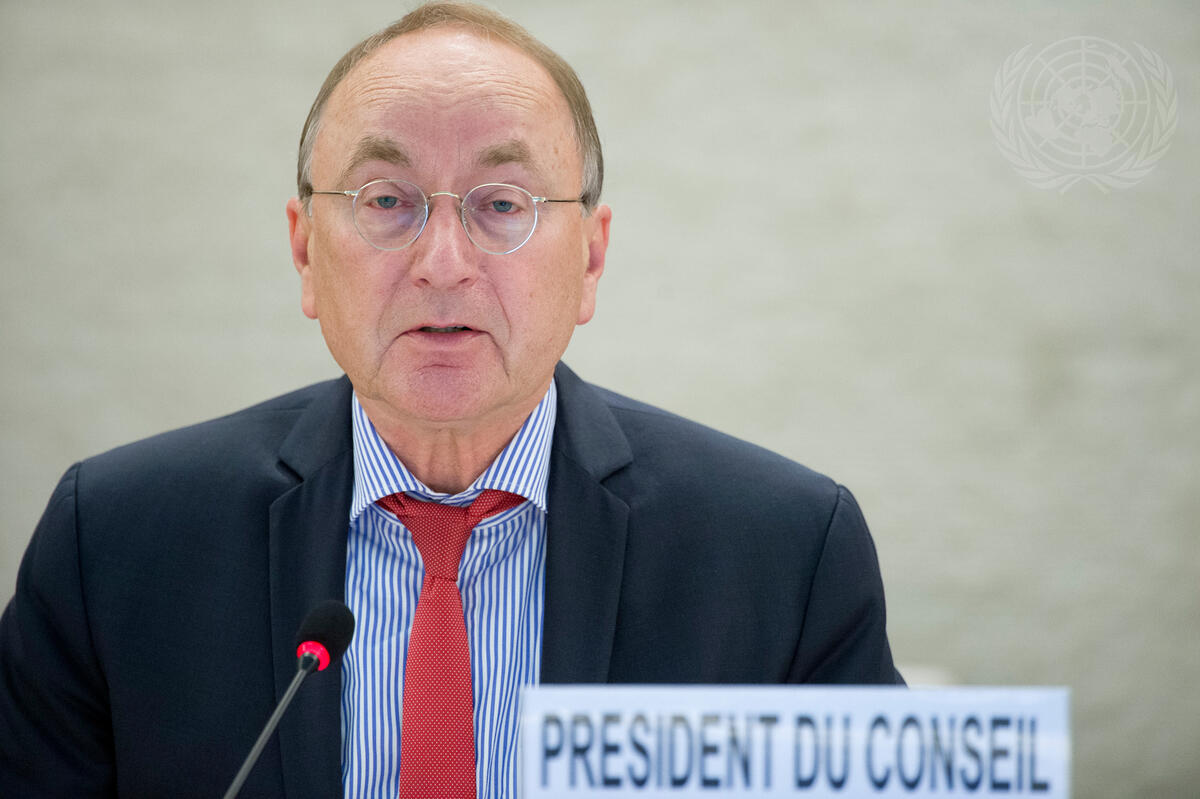 Joachim Rücker, President of the Human Rights Council and Permanent Representative of Germany to the United Nations Office at Geneva (UNOG), addresses the Human Rights Council during the presentation of the latest report from the Independent International Commission of Inquiry on Syria.
