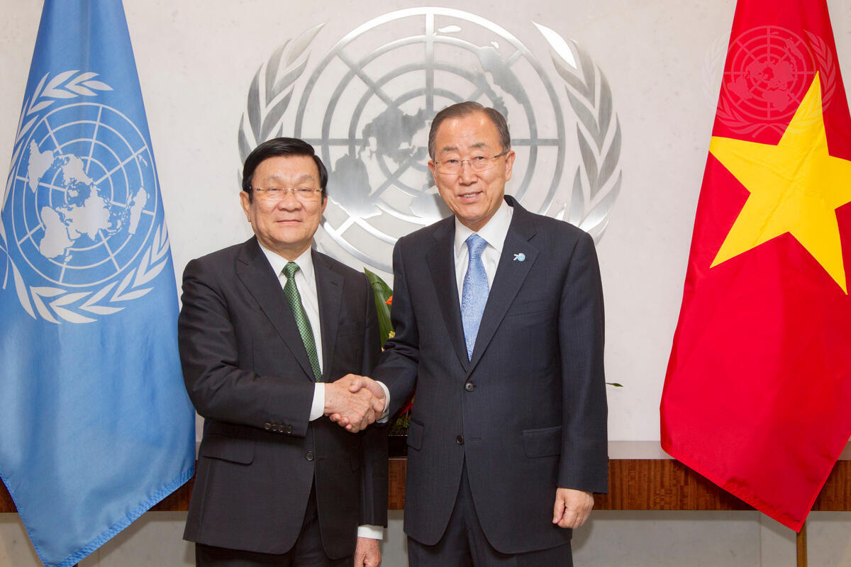 Secretary-General Ban Ki-moon (right) meets with Truong Tan Sang, President of the Socialist Republic of Viet Nam.