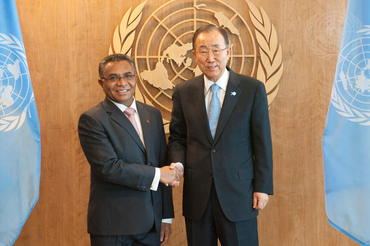 Secretary-General Ban Ki-moon (right) meets with Rui Maria de Araujo, Prime Minister of Timor-Leste.