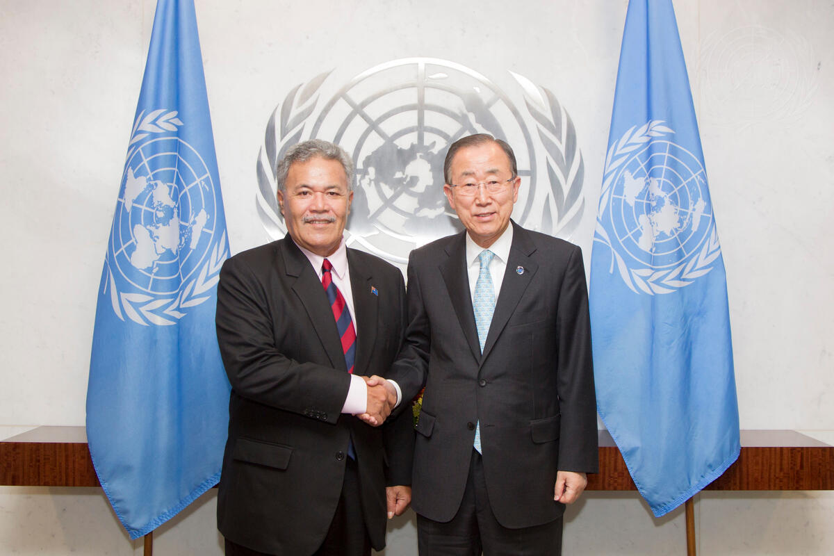 Secretary-General Ban Ki-moon (right) meets with Enele Sosene Sopoaga, Prime Minister of Tuvalu.