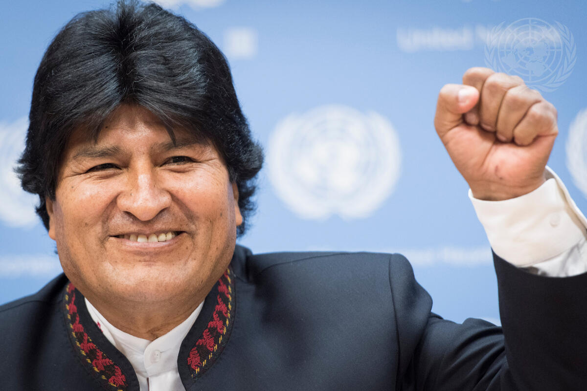 Evo Morales Ayma, President of the Plurinational State of Bolivia, briefs correspondents at a press conference in UN Headquarters.