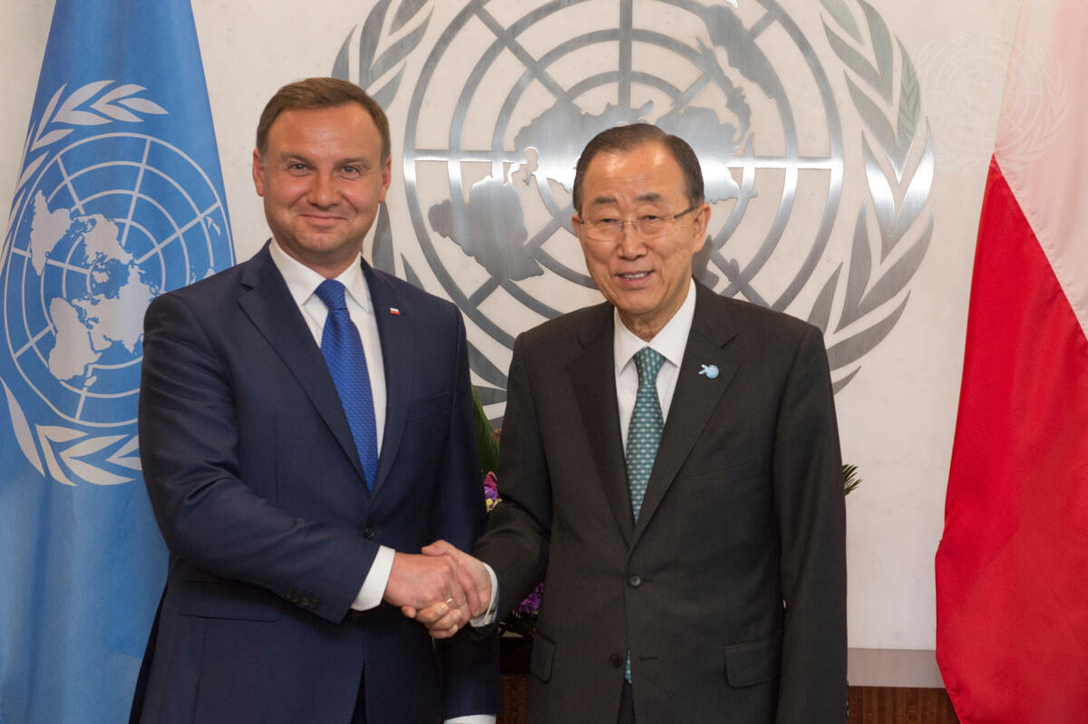 Secretary-General Ban Ki-moon (right) meets with Andrzej Duda, President of the Republic of Poland.