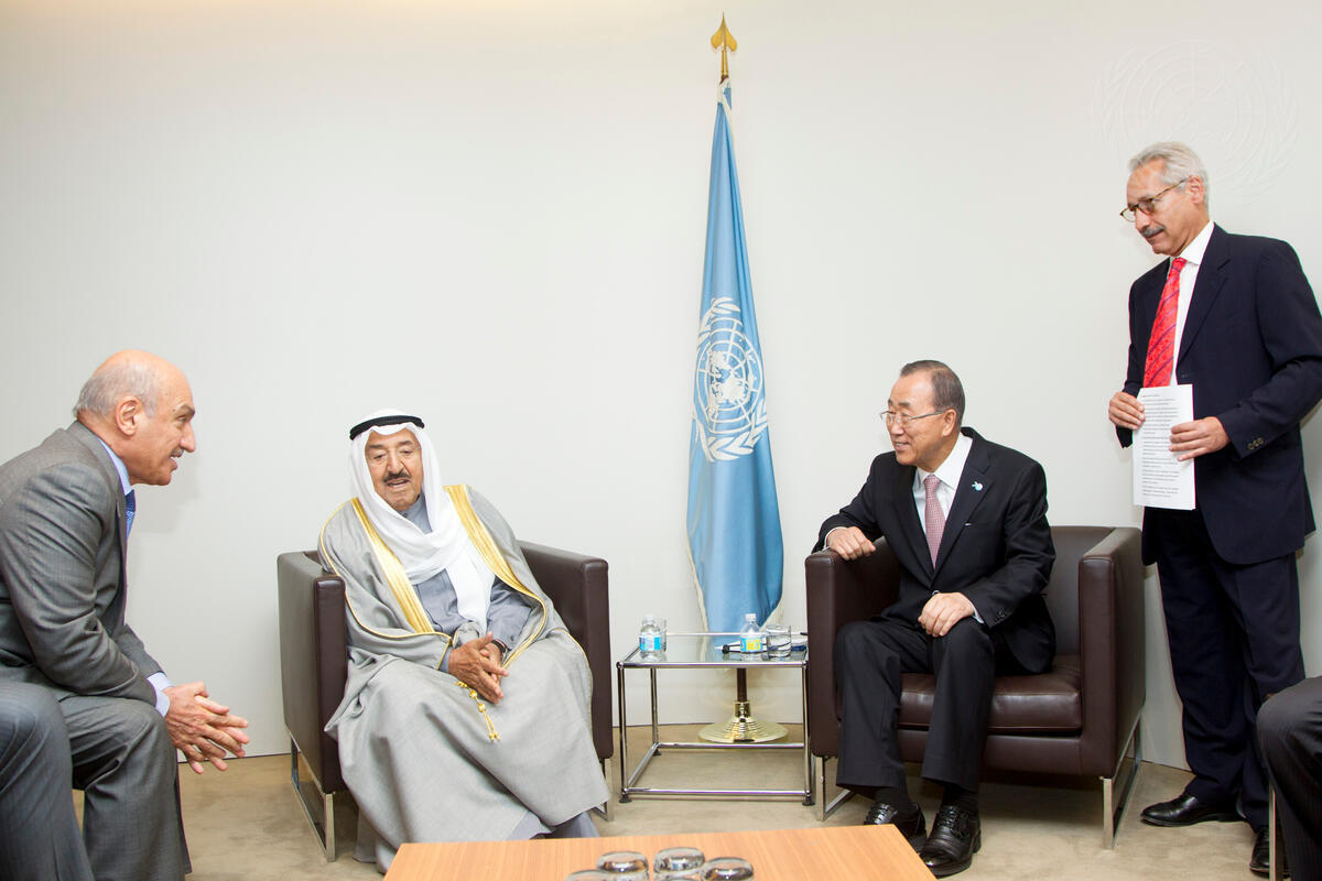Secretary-General Ban Ki-moon (centre right) meets with Sheikh Sabah Al-Ahmad Al-Jaber Al-Sabah (centre left), Amir of the State of Kuwait.