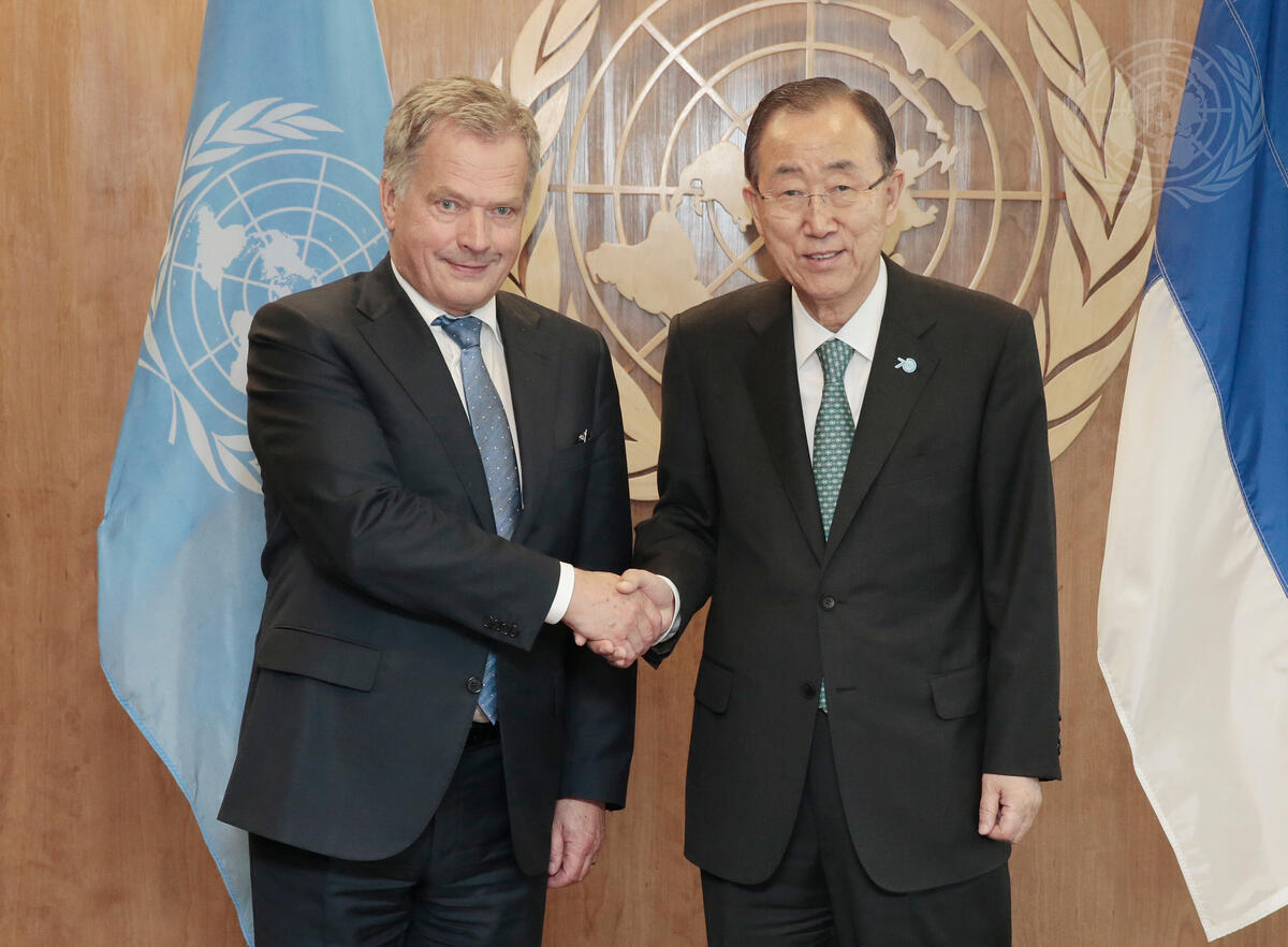 Secretary-General Ban Ki-moon (right) meets with Sauli Niinistö, President of Finland.