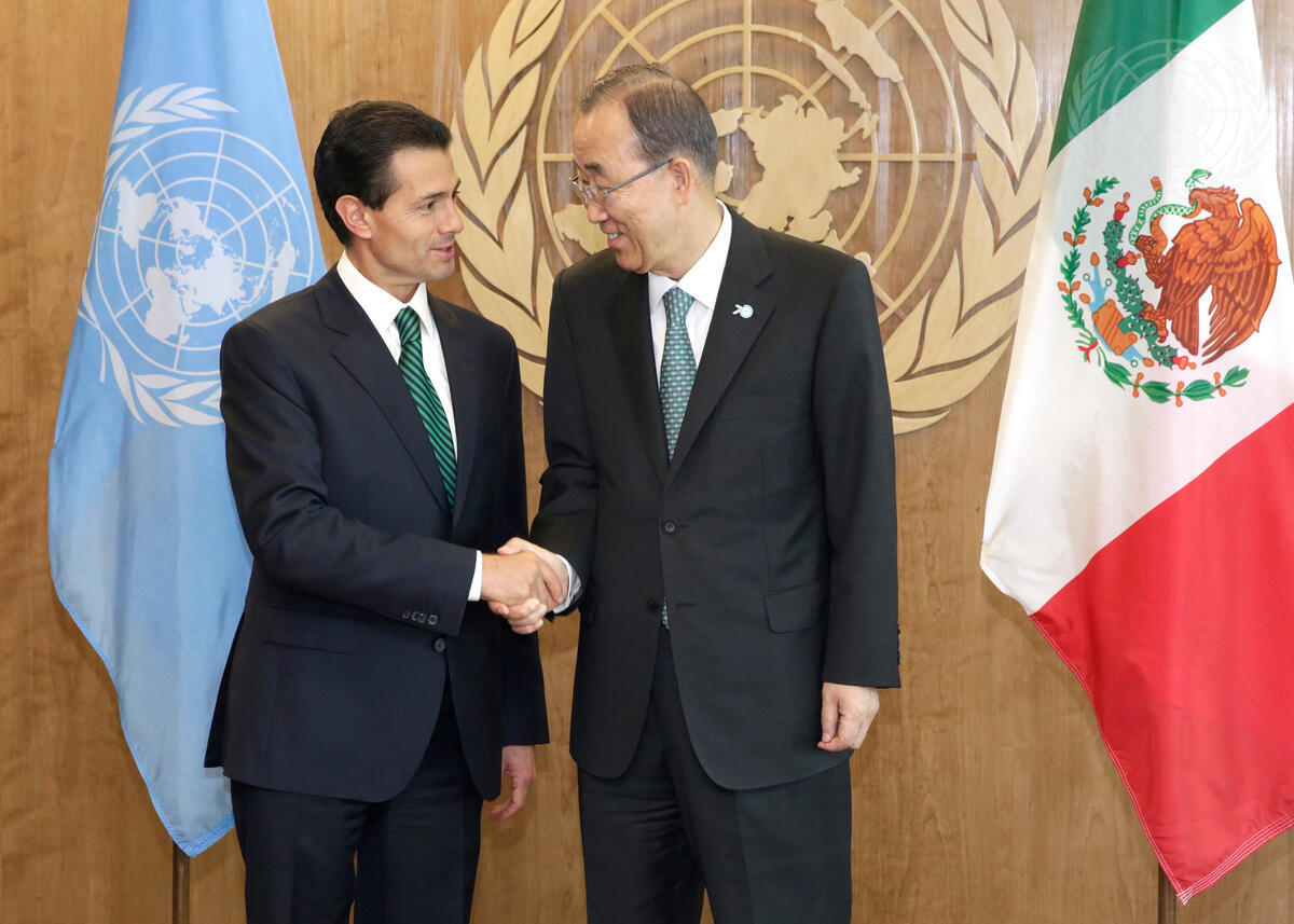 Secretary-General Ban Ki-moon (right) meets with Enrique Peña Nieto, President of Mexico.