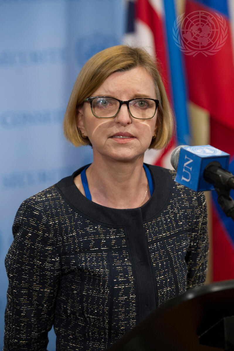 Karin Landgren, Special Representative of the Secretary-General for Liberia and Head of the United Nations Mission in Liberia (UNMIL), speaks to journalists following a Security Council meeting on the situation in that country.