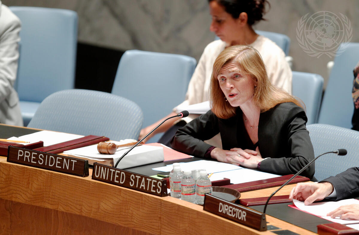 Samantha Power, United States Permanent Representative to the UN and President of the Security Council for the month of September, chairs the Council meeting.