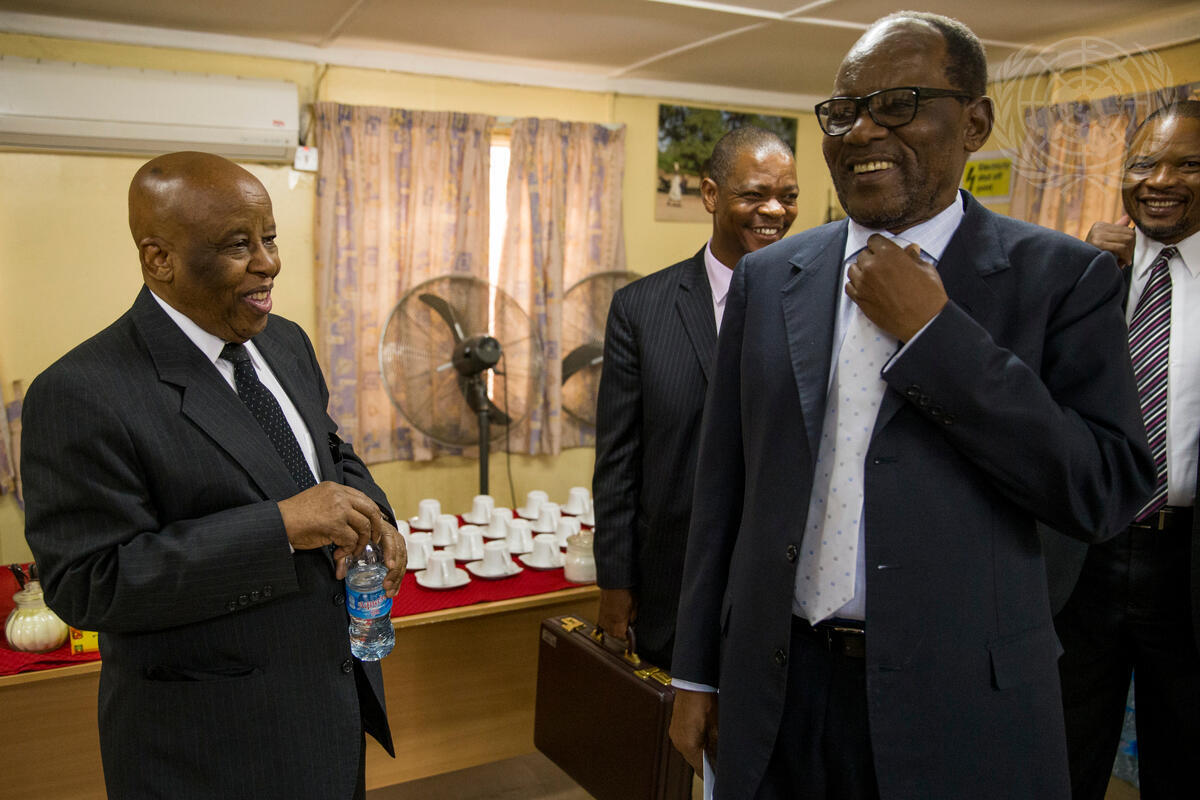 Festus Gontebanye Mogae (left), former President of Botswana and Chairperson of the Joint Monitoring and Evaluation Commission (JMEC) for the South Sudan peace accords, during the inaugural meeting of JMEC.