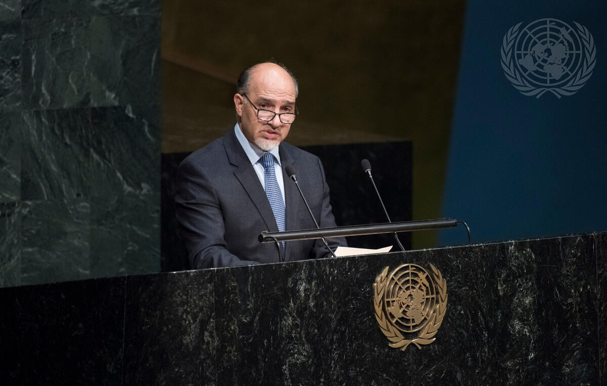 Mahmoud Saikal, Permanent Representative of Afghanistan to the UN, addresses the General Assembly meeting on the situation in his country.