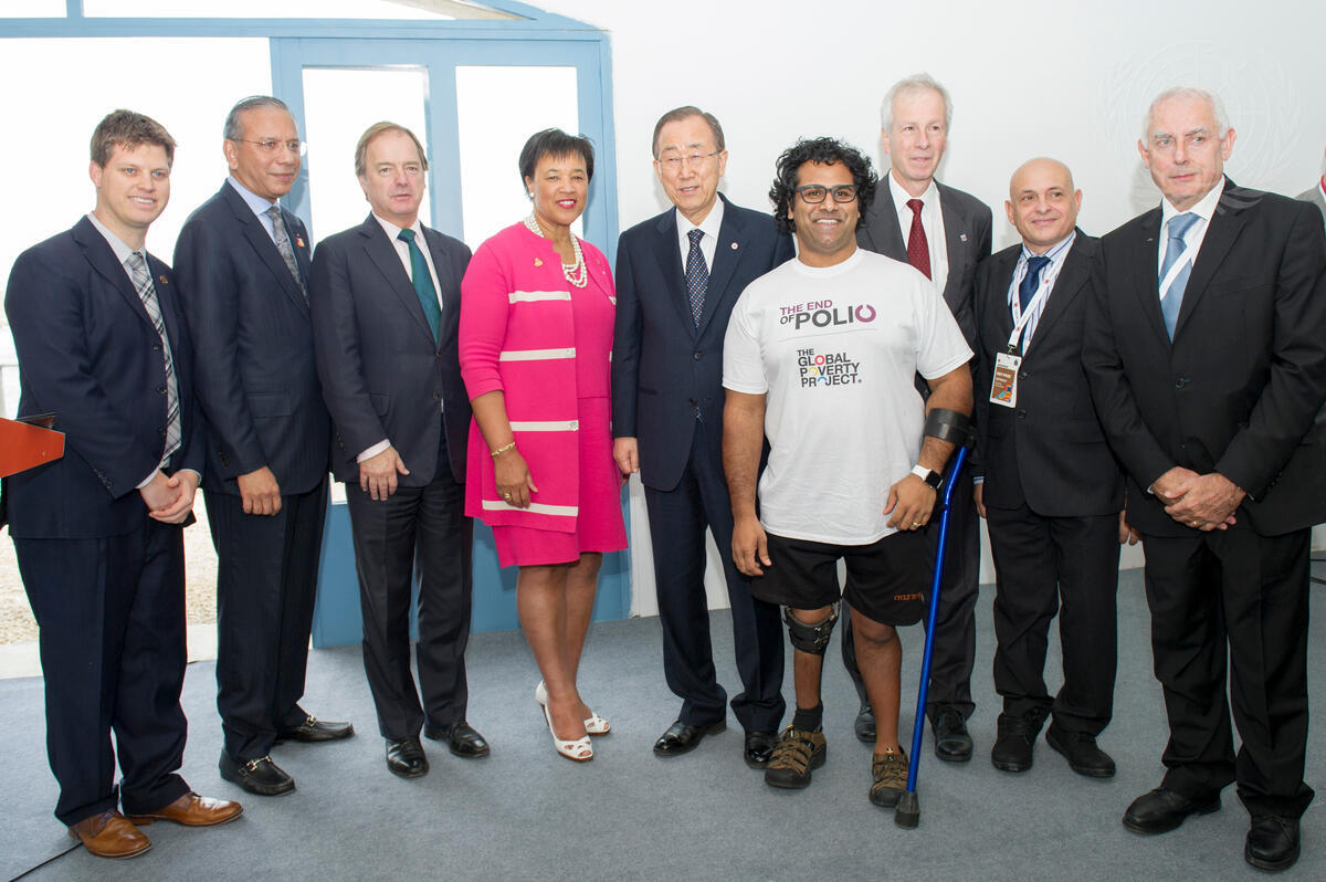 Secretary-General Ban Ki-moon (centre) poses for a group photo at a Polio Eradication event taking place on the sidelines of the 2015 Commonwealth Heads of Government Meeting (CHOGM) in Malta, 27-29 November.
