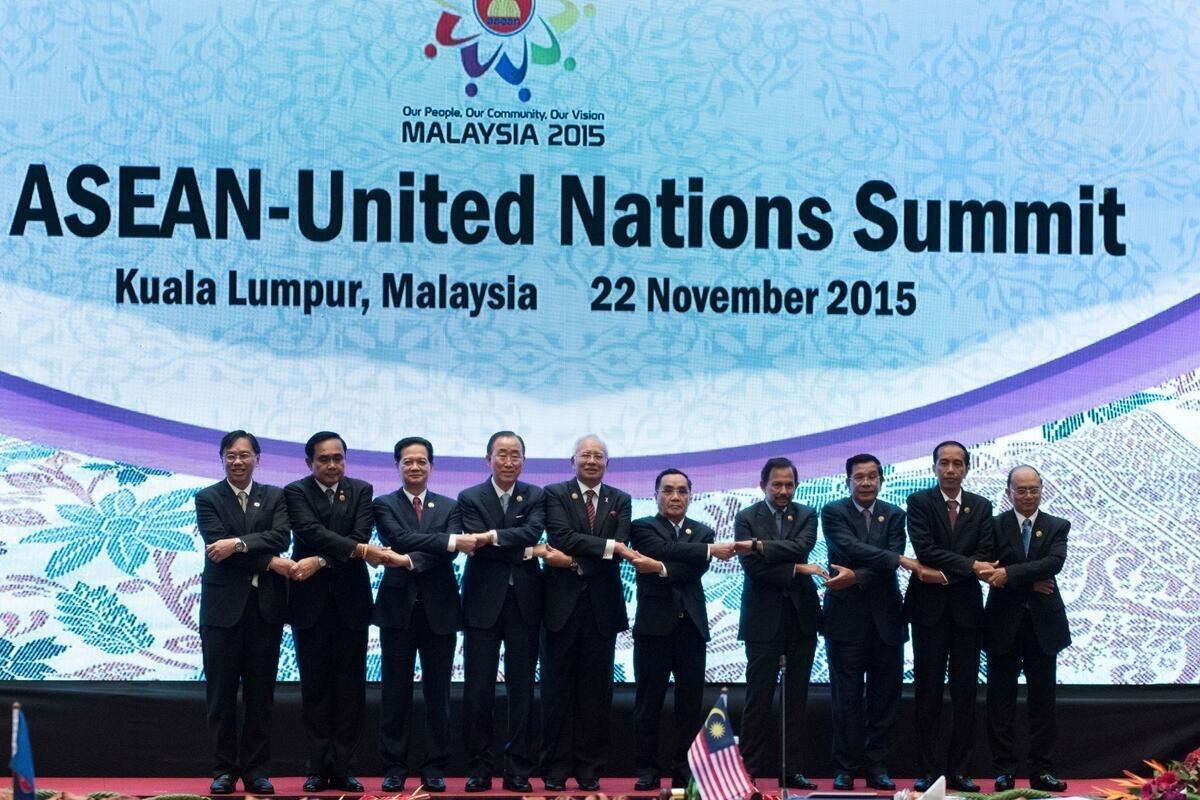 Secretary-General Ban Ki-moon (fourth from left) poses for a group photo with leaders attending the seventh Association of Southeast Asian Nations (ASEAN)-United Nations Summit, in Kuala Lumpur, Malaysia.