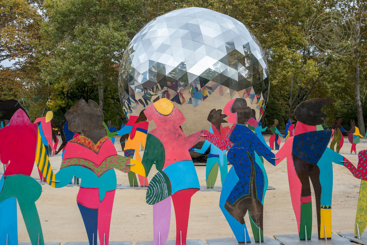 “Enlightened Universe”, a monumental art installation by Spanish artist Cristóbal Gabarrón was unveiled on Saturday, 24 October, at the Rumsey Playfield in Central Park in New York City in celebration of the seventieth anniversary of the founding of the United Nations. The commemorative work of art depicts seventy life-size figures joined in hand around a central globe, creating a human chain of global citizenship, respect for nature and shared responsibility. The sphere measures 6,371 millimetres in diameter to correspond to the Earth’s average radius of 6,371 kilometres and the figures represent the seventy years of the United Nations.