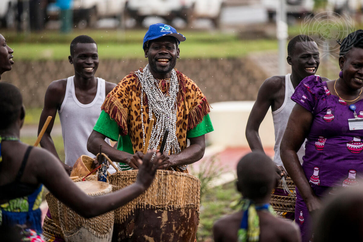 Some of the United Nations Mission in South Sudan (UNMISS) officers give a South Sudanese cultural performance during the celebration of the 70th Anniversary of the United Nations.
