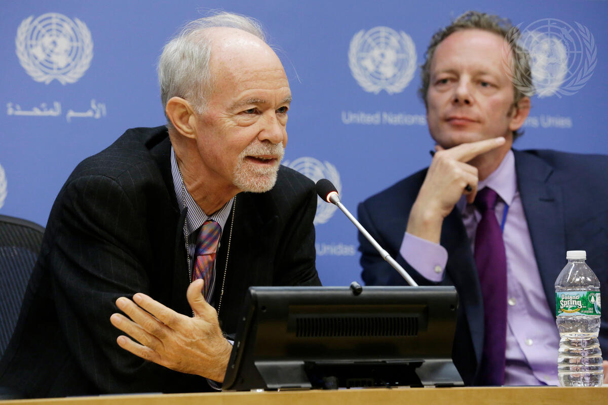 David M. Malone (left), Rector of the United Nations University (UNU), briefs journalists on a new volume entitled “The UN Security Council in the 21st Century”. He was joined in the briefing by Sebastian von Einsiedel (right), Director of the UNU Centre for Policy Research (UNU-CPR).