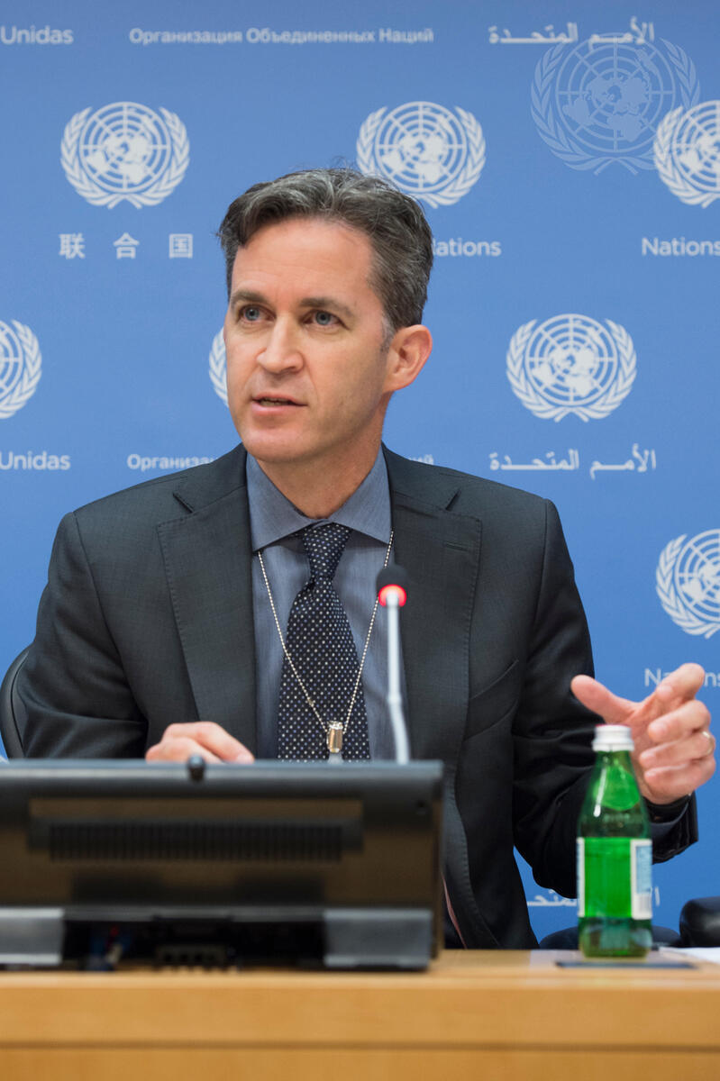 David Kaye, UN Special Rapporteur on the promotion and protection of the right to freedom of opinion and expression, briefs journalists.