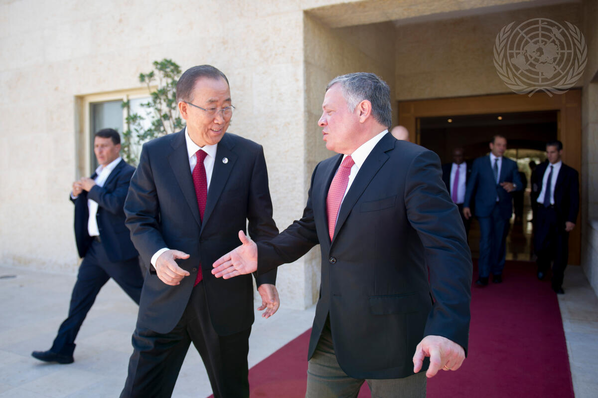 Secretary-General Ban Ki-moon (centre left) meets with King Abdullah II ibn Al Hussein of the Hashemite Kingdom of Jordan (centre right), in Amman
