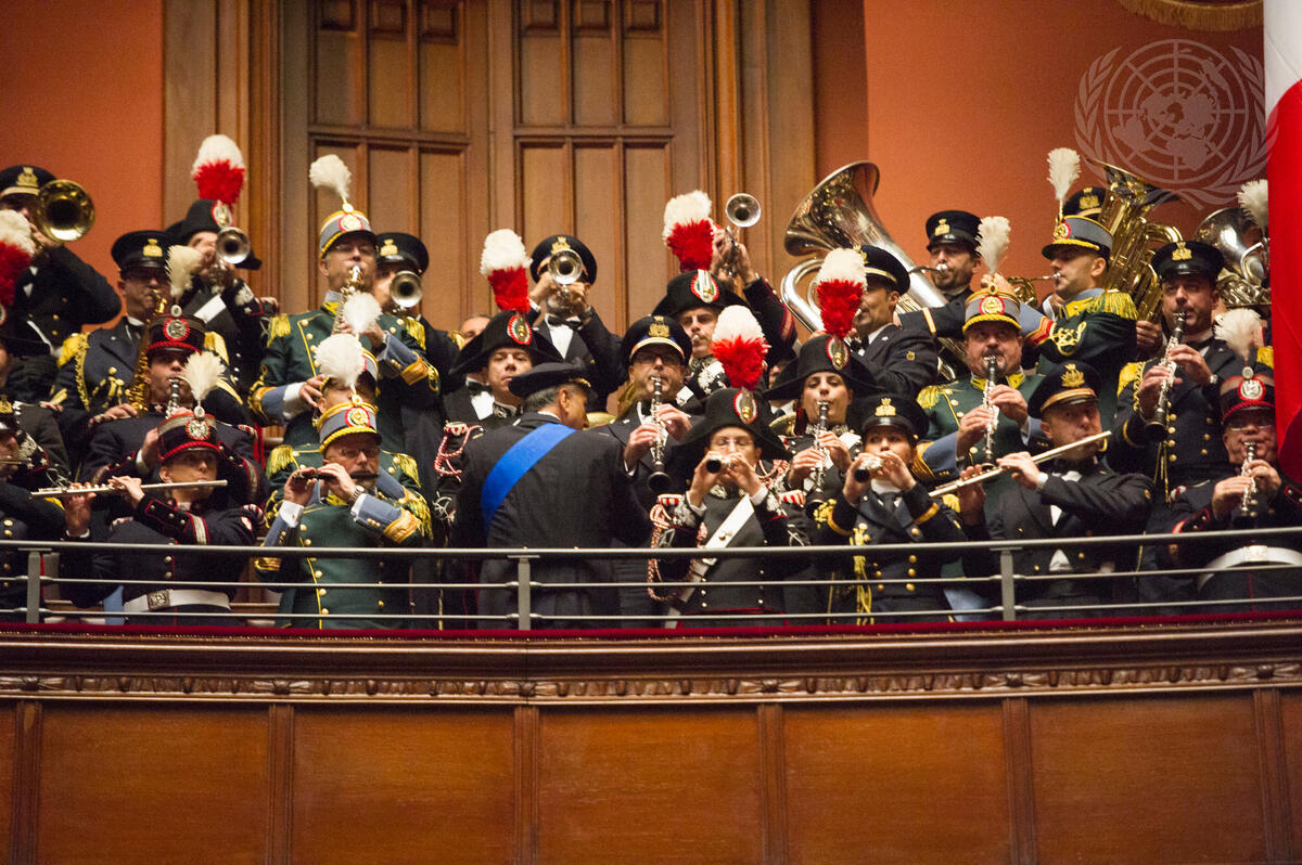 A military brass band performing at the Palazzo Montecitorio, on the occasion of Secretary-General Ban Ki-moon’s address to the Chamber of Deputies and Senate of Italy.