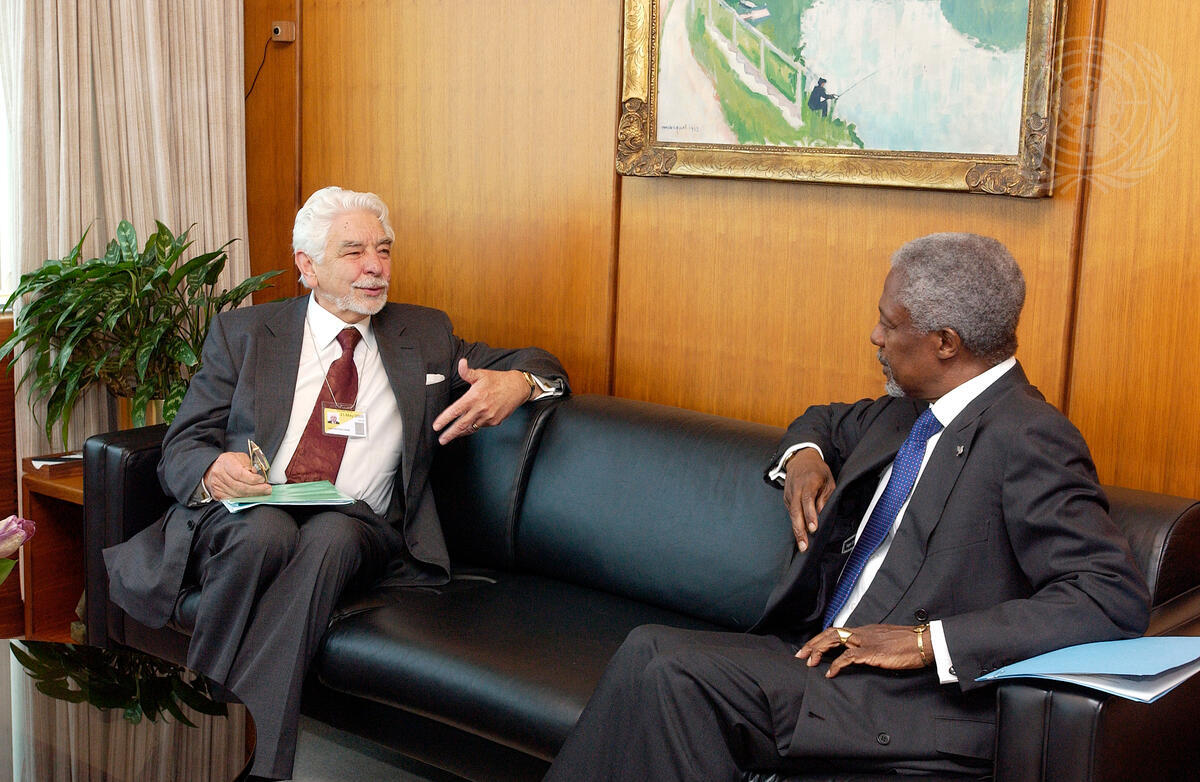 Secretary-General Kofi Annan (right) meets with Professor Lars Kallings, his Special Envoy for HIV/AIDS in Eastern Europe.