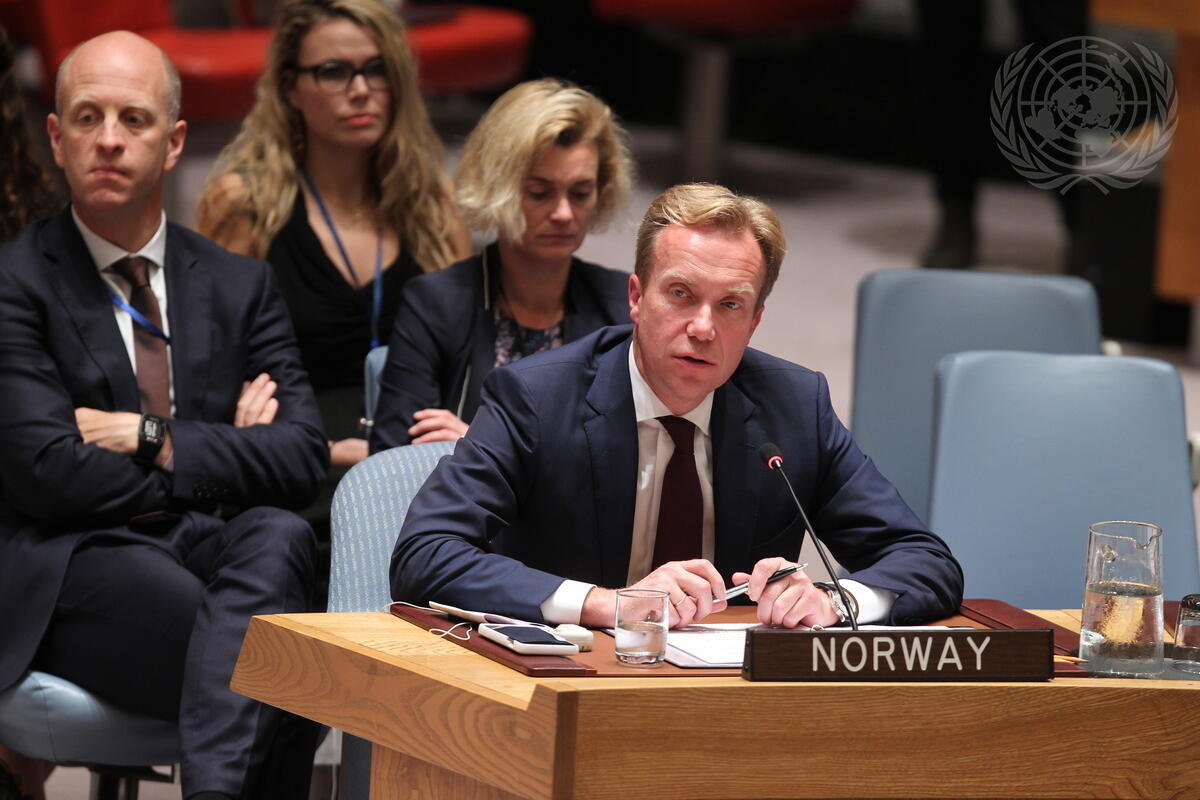 Børge Brende, Minister for Foreign Affairs of Norway, speaks at today's Ministerial Level Security Council meeting on the maintenance of international peace and security in the Middle East and North Africa and countering terrorist threats in the region.