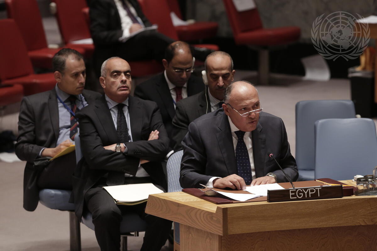 Sameh Hassan Shokry Selim, Minister for Foreign Affairs of the Arab Republic of Egypt, speaks at today's Ministerial Level Security Council meeting on the maintenance of international peace and security in the Middle East and North Africa and countering terrorist threats in the region.