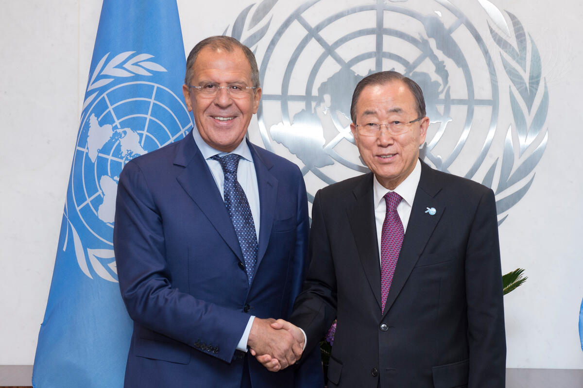 Secretary-General Ban Ki-moon (right) meets with Sergey V. Lavrov, Minister for Foreign Affairs of the Russian Federation.