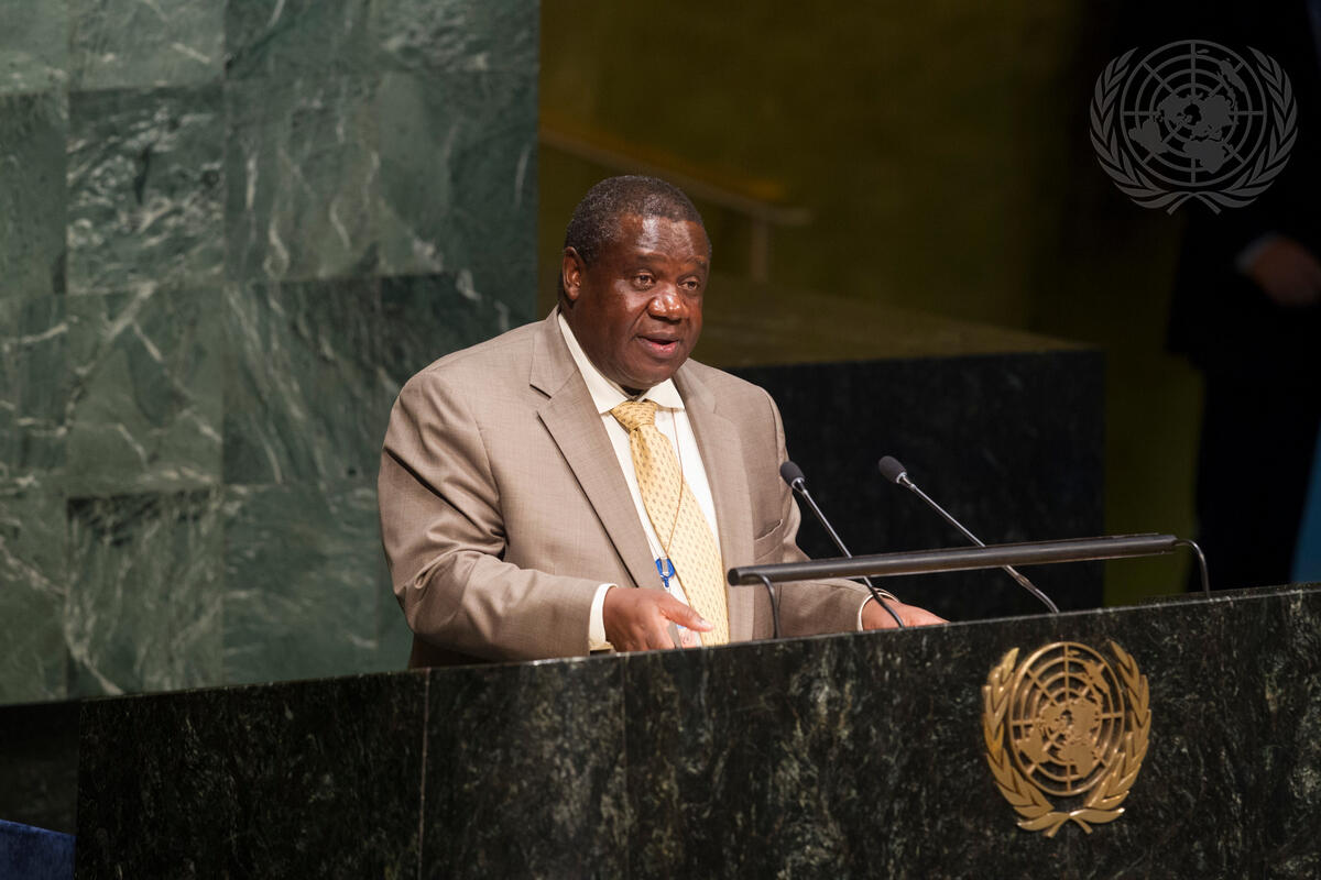 Jeremiah Nyamane Kingsley Mamabolo, Permanent Representative of the Republic of South Africa to the UN, addresses the Assembly, speaking for the African States.