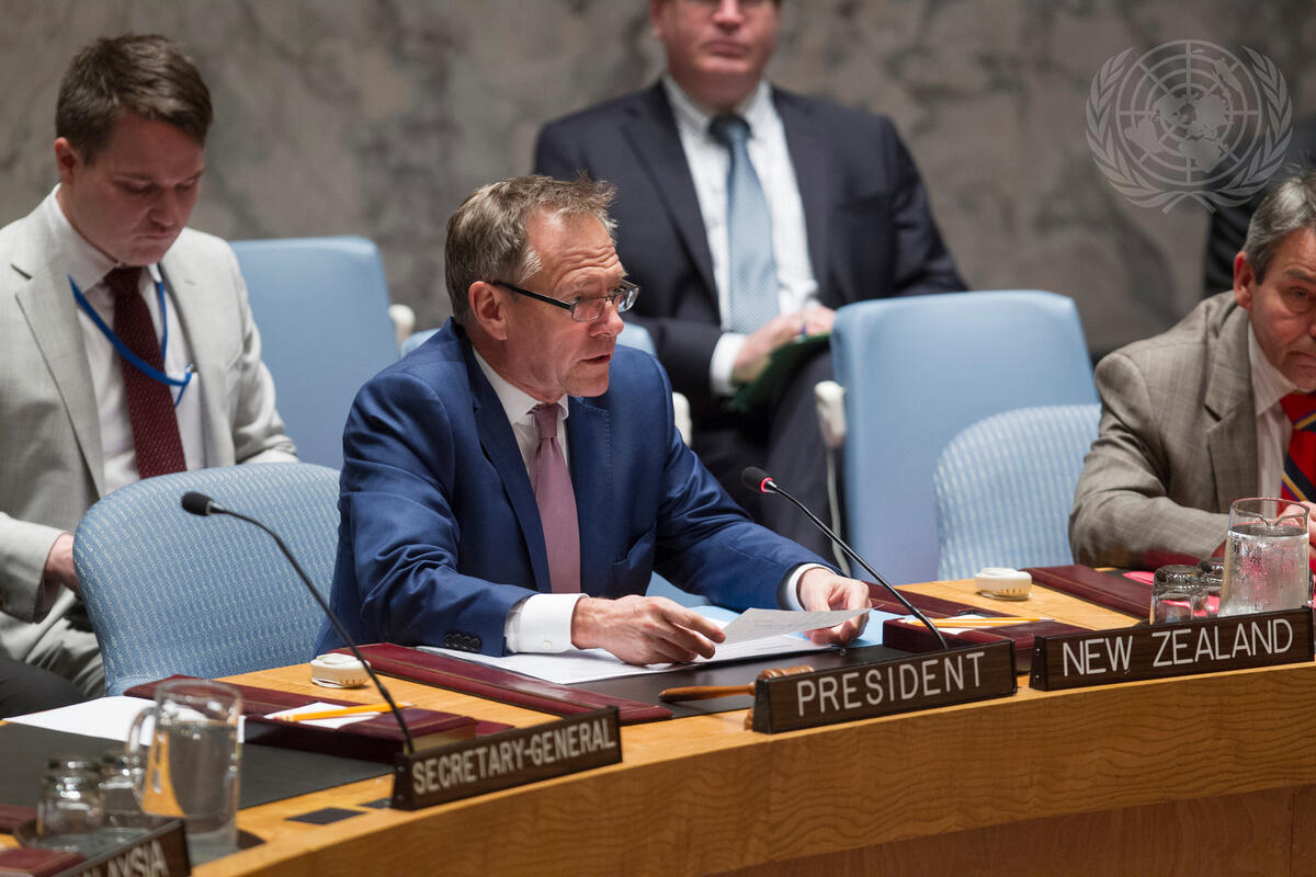 Gerard Jacobus van Bohemen, Permanent Representative of New Zealand to the UN and President of the Security Council for July, chairs the Council’s meeting on the situation in Somalia.