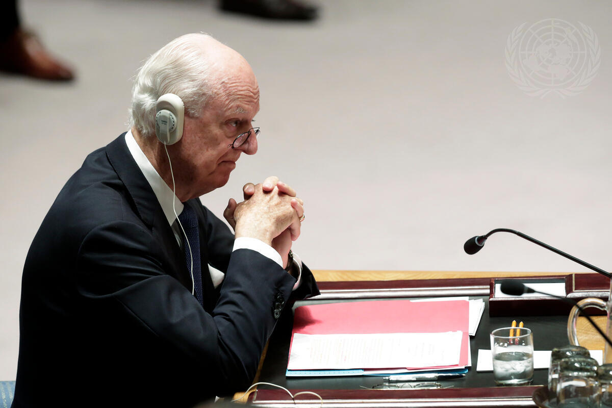 Staffan de Mistura, Special Envoy of the Secretary-General for Syria, during the Security Council meeting on the situation in that country.