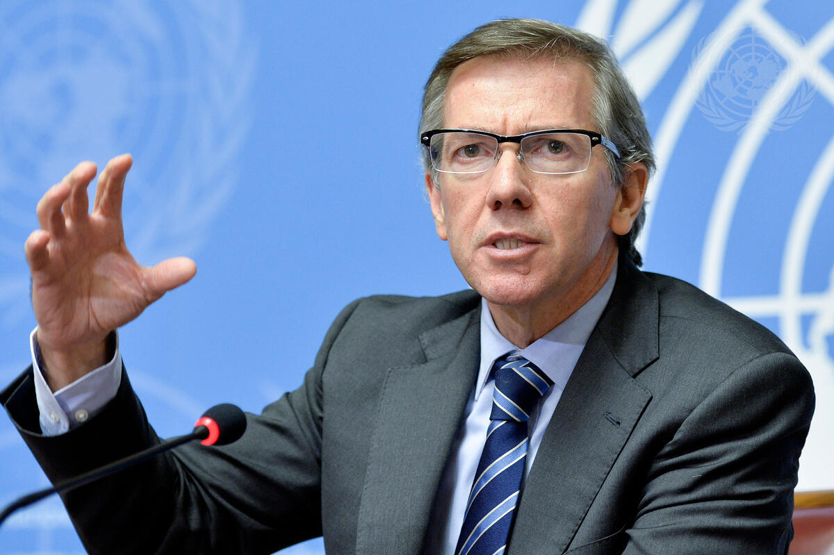 Bernardino Léon, Special Representative of the Secretary-General and Head of the UN Support Mission in Libya (UNSMIL), briefs journalists on talks taking place in Geneva, aimed at bringing peace to Libya.