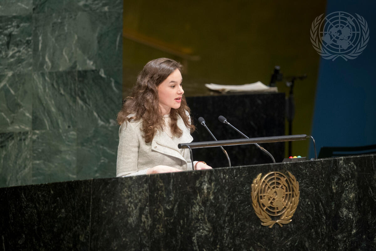 Charlotte Cohen, Youth Advisor to the UK Prime Minister’s Holocaust Commission, addresses a United Nations memorial ceremony to mark the International Day of Commemoration in Memory of the Victims of the Holocaust (27 January).