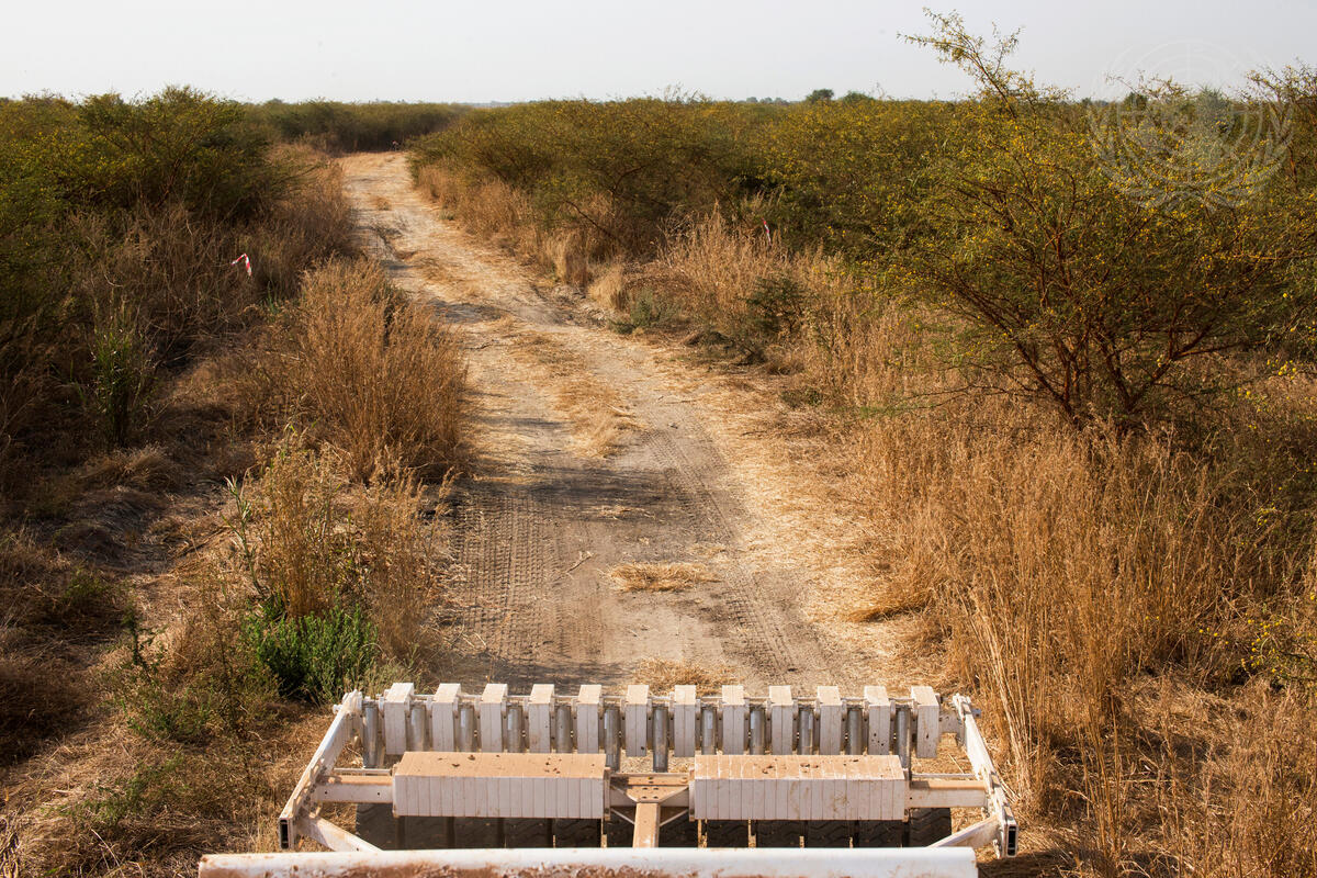 Caption Description Verification of clearance of route leading into Rubkona airstrip extension near Bentiu, by United Nations Mine Action Service (UNMAS) and contractor TDI. The extension came as an UNMISS directive, with the goal of allowing for greater capacity and heavier payloads in aircraft providing Mission and Humanitarian support and supplies. UNMAS was requested to ensure clearance of the area (verify it clear of UXO and other ERW and explosive materials) prior to the commencement of engineering work.