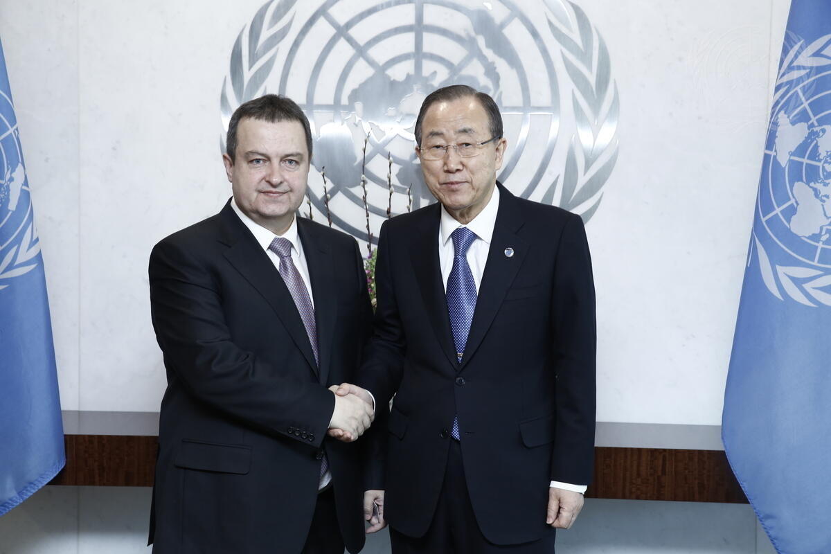 Secretary-General Ban Ki-moon (right) meets with Ivica Dacic, First Deputy Prime Minister and Minister for Foreign Affairs of the Republic of Serbia and Chair-in-Office of the Organization for Security and Co-operation in Europe (OSCE).