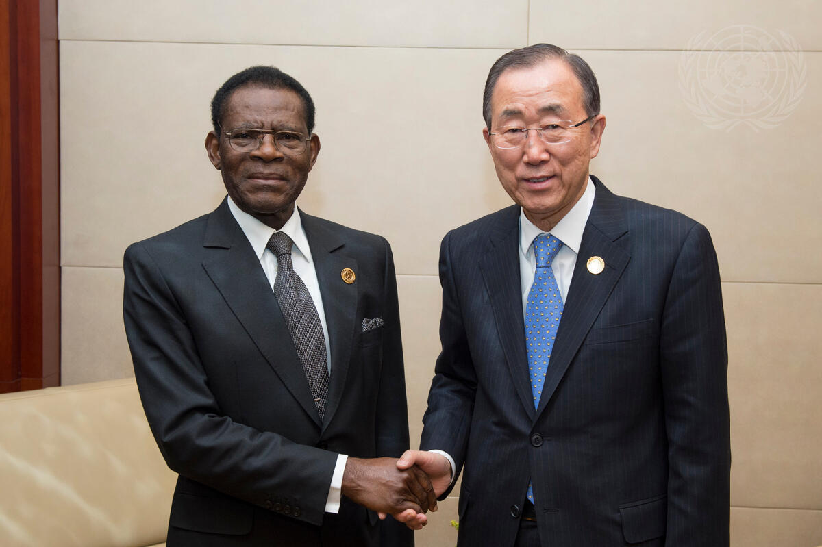 Secretary-General Ban Ki-moon (right) meets with Teodoro Obiang Nguema Mbasogo, President of Equatorial Guinea. The Secretary-General is in Addis Ababa to take part in the African Union (AU) Summit in Addis Ababa, Ethiopia.