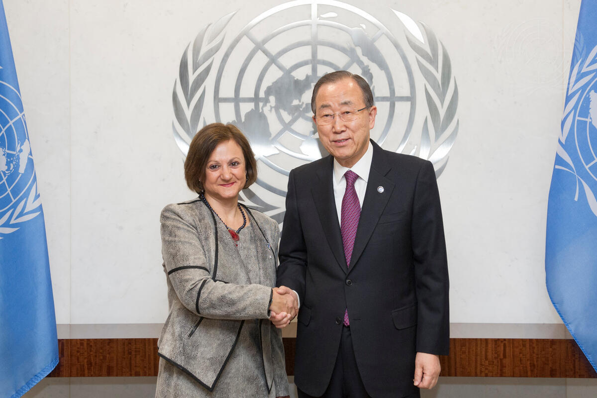Secretary-General Ban Ki-moon (right) with Cristina Gallach, newly sworn-in Under-Secretary-General for Communications and Public Information.