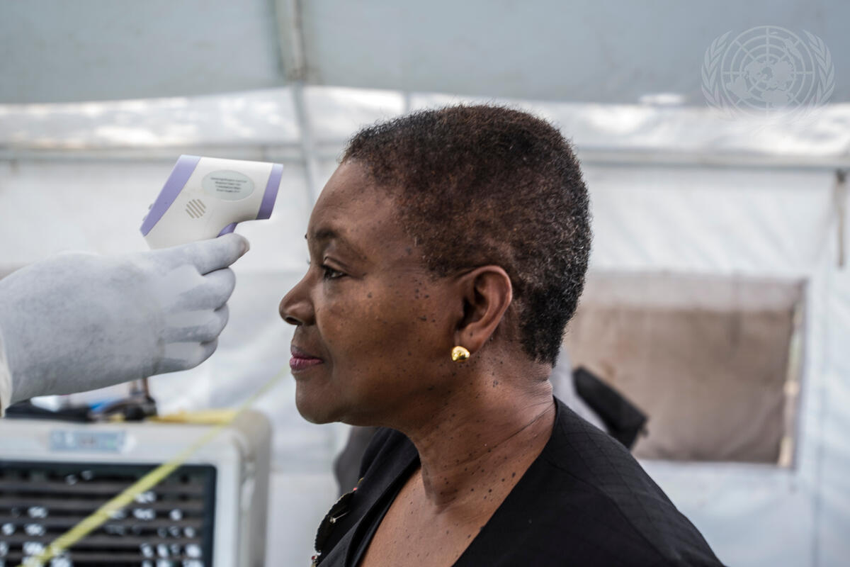 Valerie Amos, Under-Secretary-General for Humanitarian Affairs and Emergency Relief Coordinator, has her temperature checked on arrival to Juba, South Sudan.