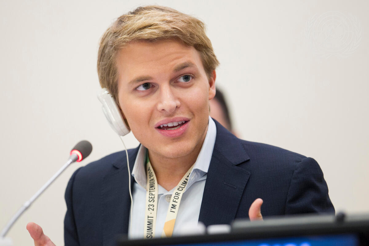 MSNBC Host Ronan Farrow speaks during today's thematic discussion, ""Voices from the Climate Front Lines"". The conversation is taking place as part of the Climate Summit, being held at UN Headquarters in New York.