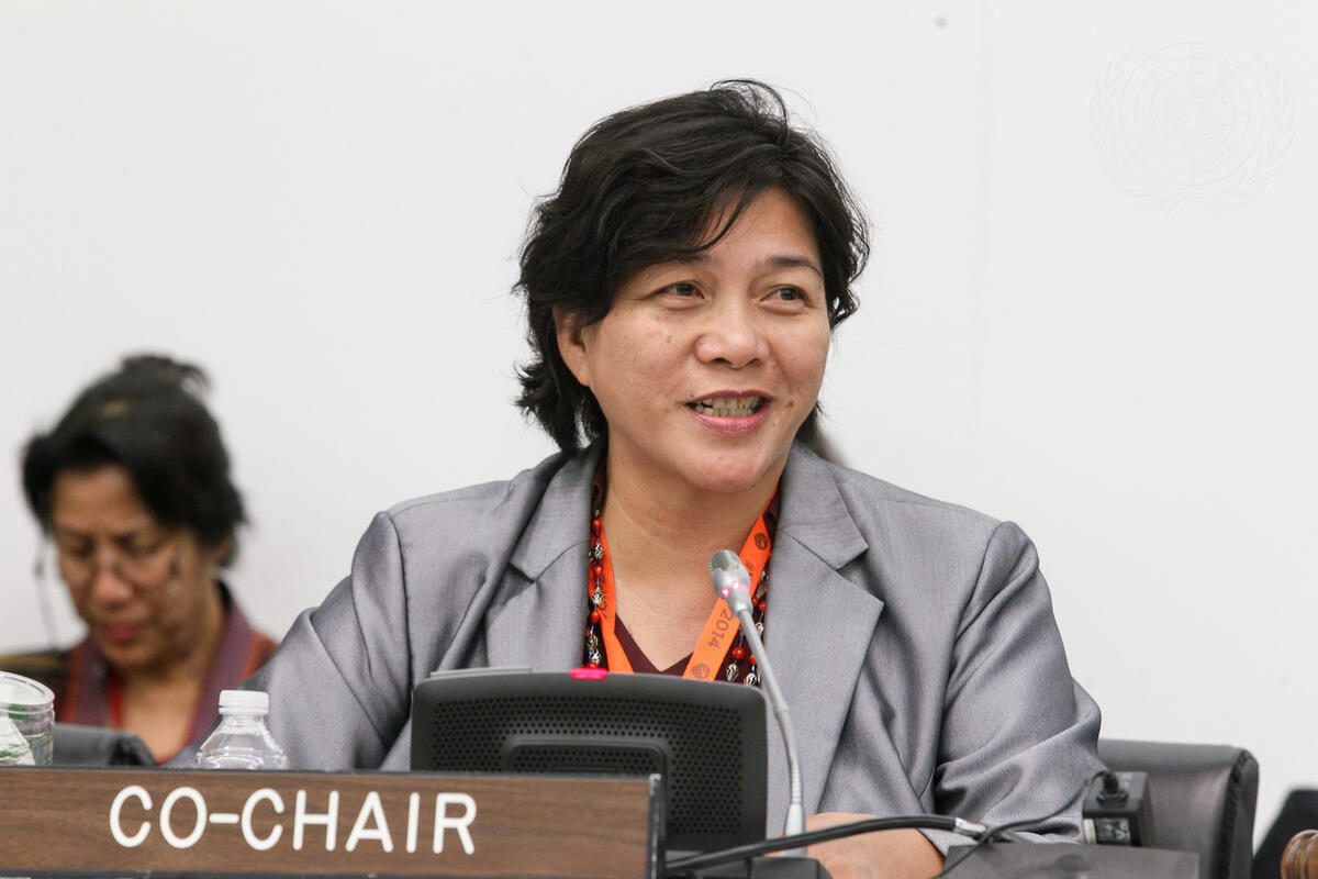 Caption Description Co-chair, Jannie Lasimbang, Representative of the Asia Indigenous Region, speaks during today's panel discussion on ""Indigenous priorities for the post-2015 sustainable development agenda"" taking place as part of the First World Conference on Indigenous Peoples (WCIP).
