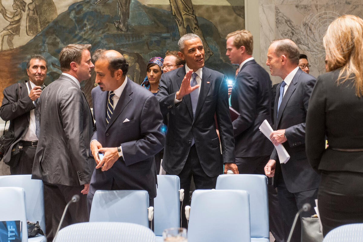 Barack Obama (centre), President of the United States of America and President of the Security Council for September, at the Council summit. Also pictured, Tony Abbott (second from right), Prime Minister of Australia.