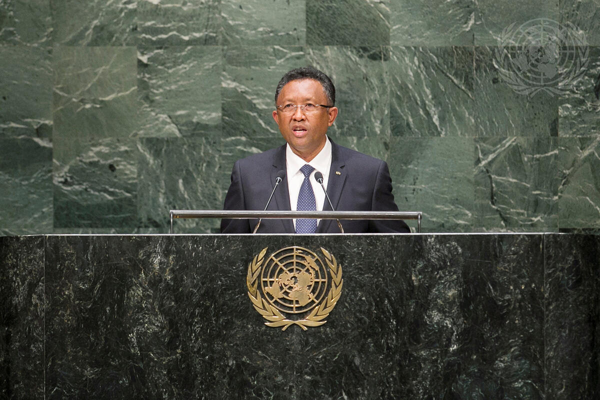 Hery Martial Rajaonarimampianina Rakotoarimanana, President of the Republic of Madagascar, addresses the general debate of the sixty-ninth session of the General Assembly.