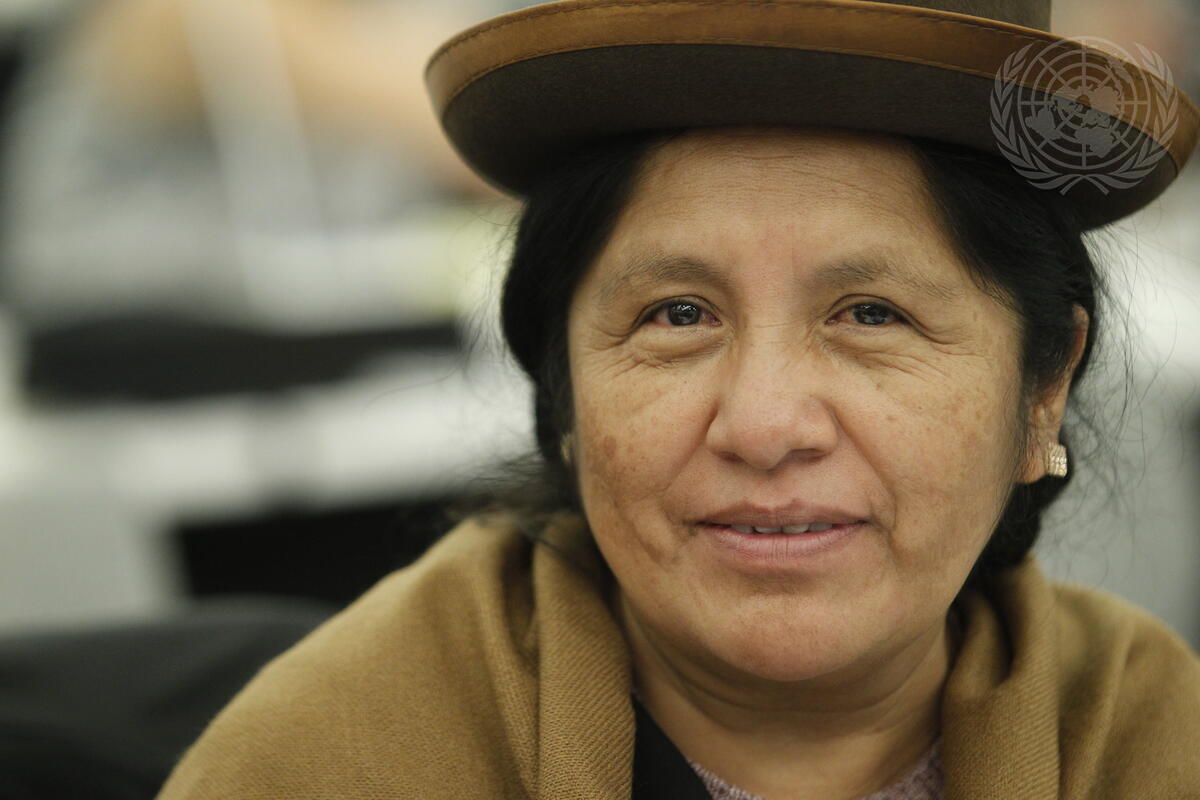 A participant at today's round table discussion on ""Indigenous Peoples' Lands, Territories and Resources"", taking place as part of the first World Conference on Indigenous Peoples (WCIP).