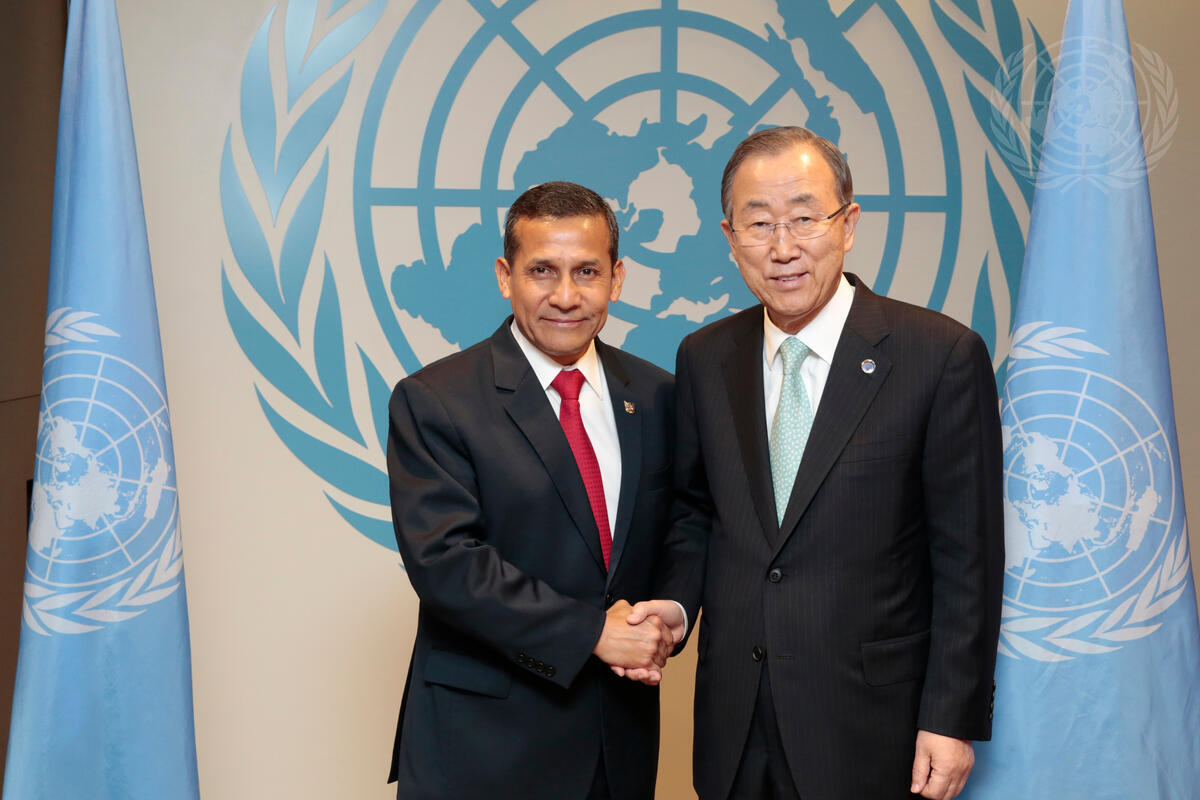 Secretary-General Ban Ki-moon (right) meets with Ollanta Humala Tasso, President of Peru.