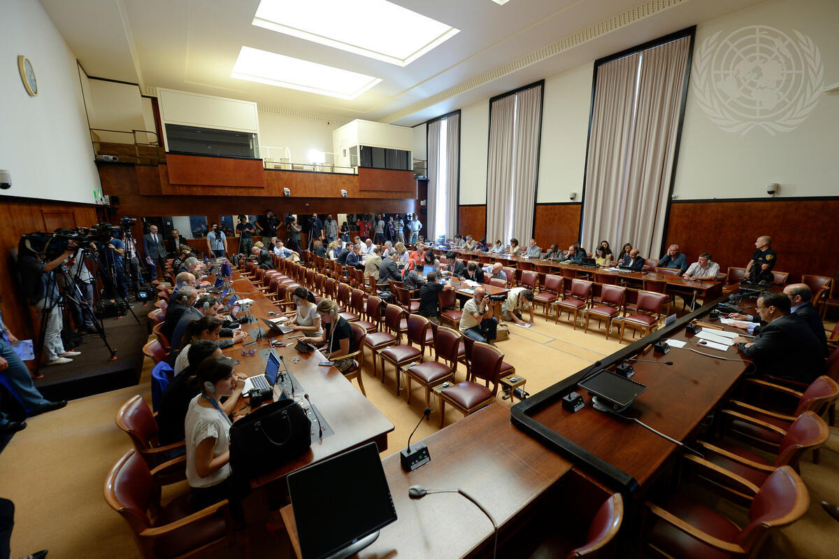 A general view of the media during the press conference of Ismail Ould Chiekh Ahmed, the Special Envoy for the Secretary General for Yemen, about the Geneva Consulations on Yemen.