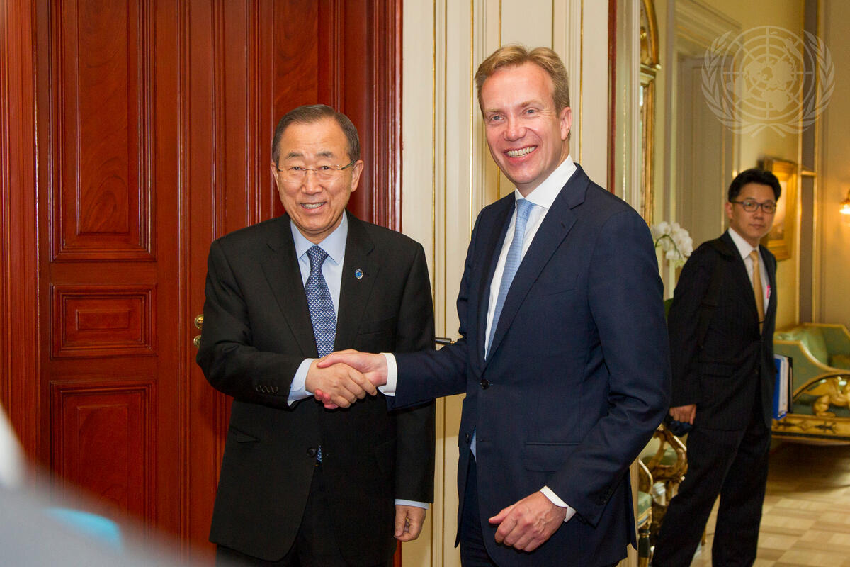 Secretary-General Ban Ki-moon (left) meets Børge Brende (right), Minister for Foreign Affairs of Norway.