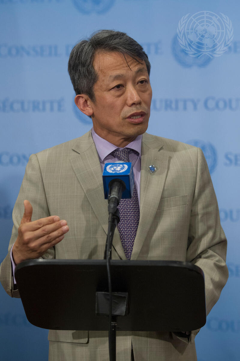 Kim Won-soo, Acting UN High Representative for Disarmament Affairs, speaks to journalists, following closed-door Security Council consultations on the use of chemical weapons in Syria.
