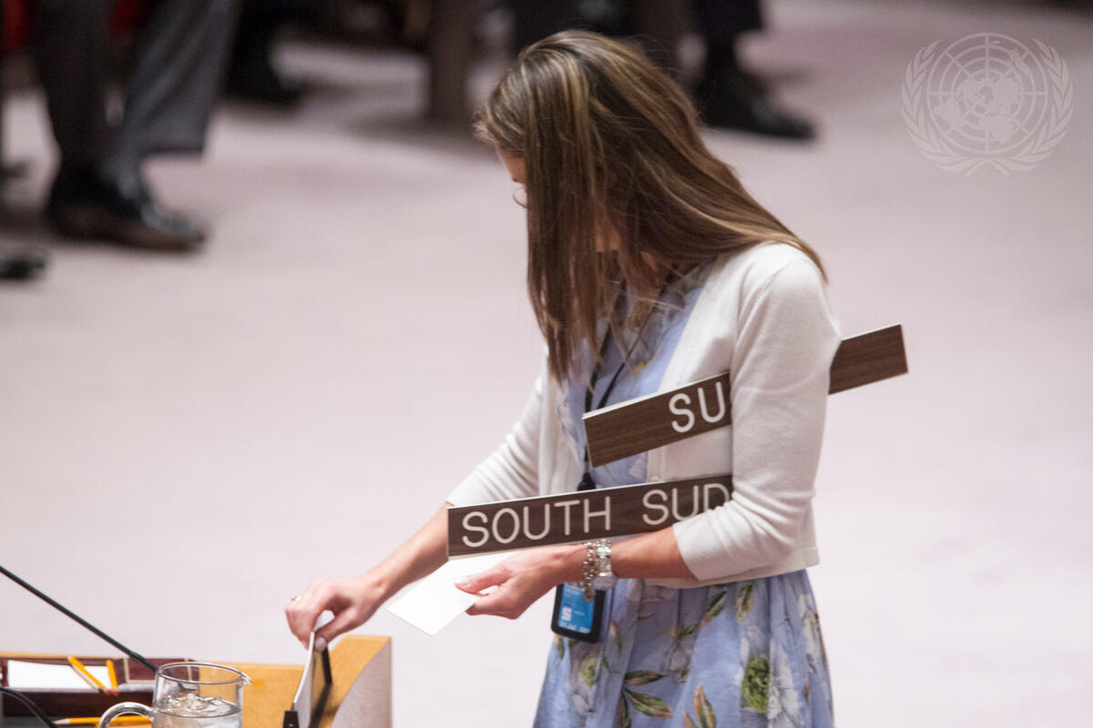 Conference Officer Preparing Seating for Security Council Meeting