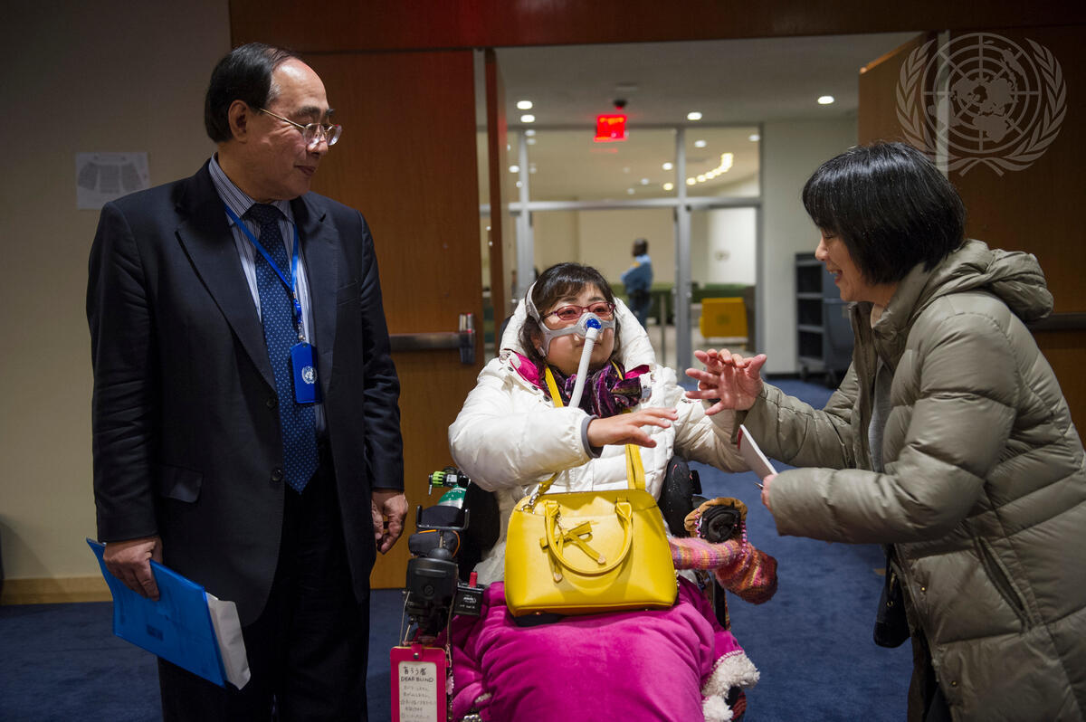 Wu Hongbo (left), Under-Secretary-General for Economic and Social Affair, with participants attending a special event organized by the Department of Economic and Social Affairs (DESA) on the occasion of the International Day of Persons with Disabilities (3 December).