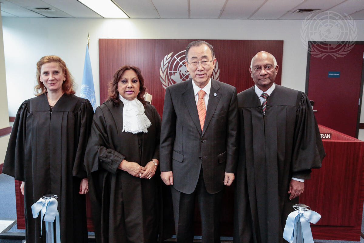 Caption Description Secretary-General Ban Ki-moon (second from right) poses for a photo with Judge Alessandra Greceanu (left), Judge Memooda Ebrahim-Carstens (second from left), and Judge Goolam Hoosen Kader-Meeran (right) at the ribbon cutting ceremony inaugurating the UN Dispute and Appeals Tribunals Courtroom in New York.
