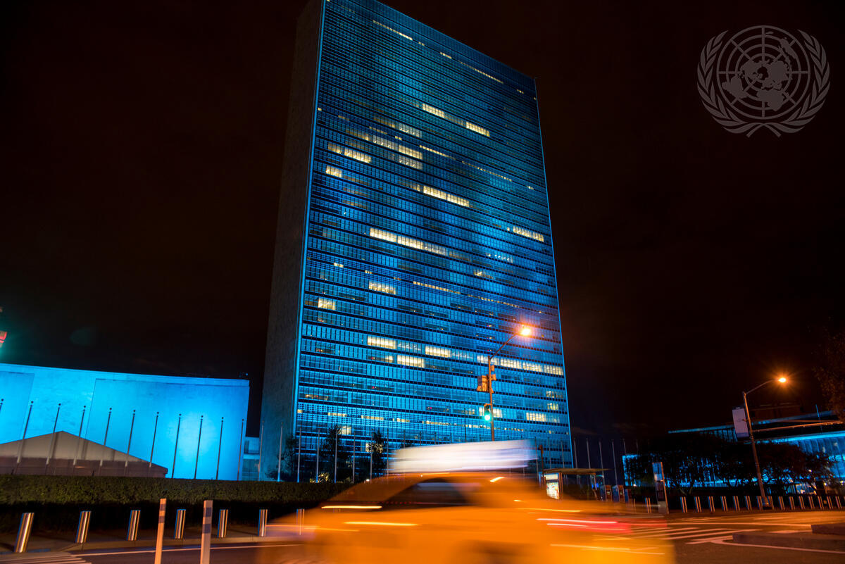 UN Headquarters Lights Up in Blue to Celebrate 70th Anniversary