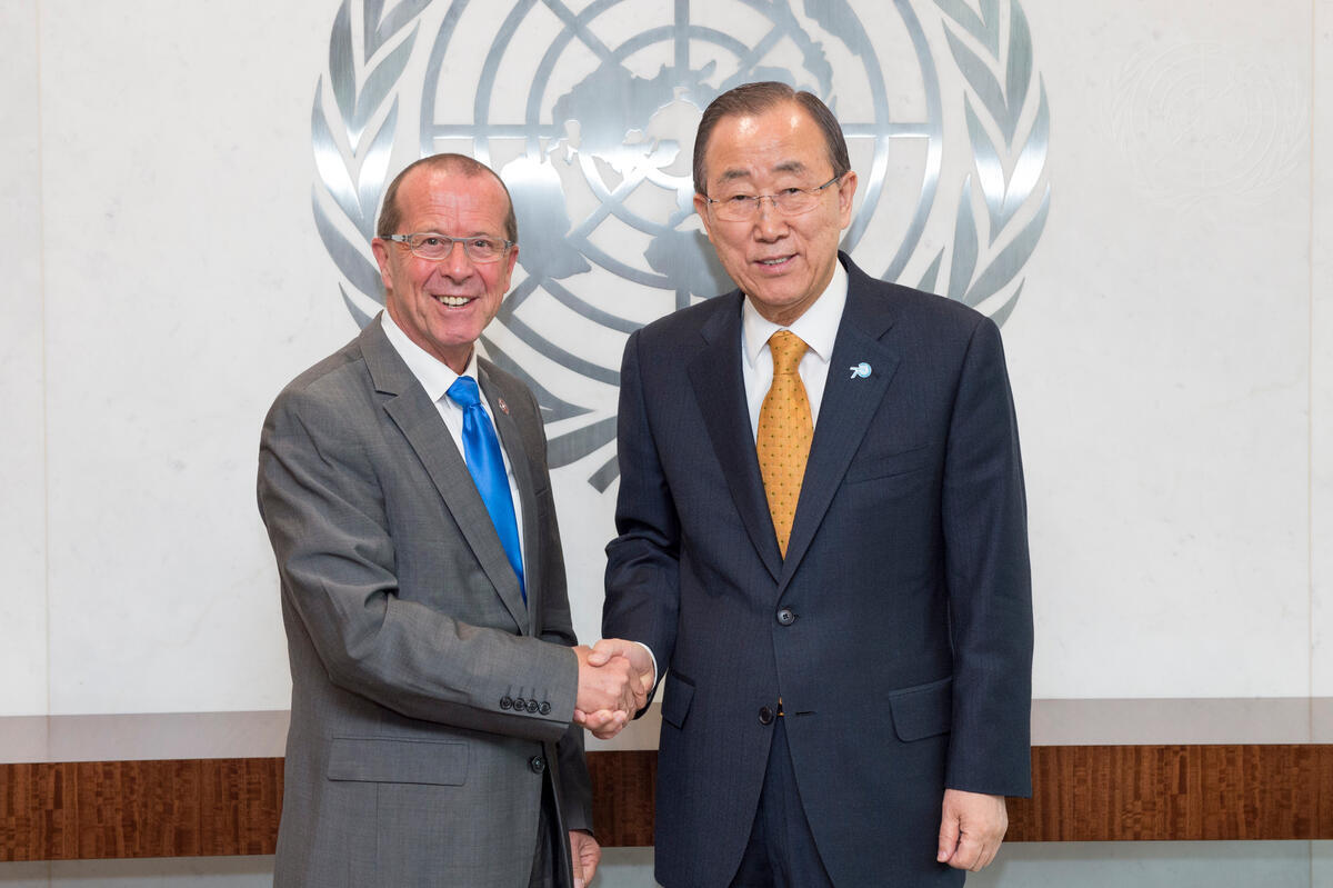 Secretary-General Ban Ki-moon (right) meets with Martin Kobler, his incoming Special Representative and Head of the UN Support Mission in Libya (UNSMIL).